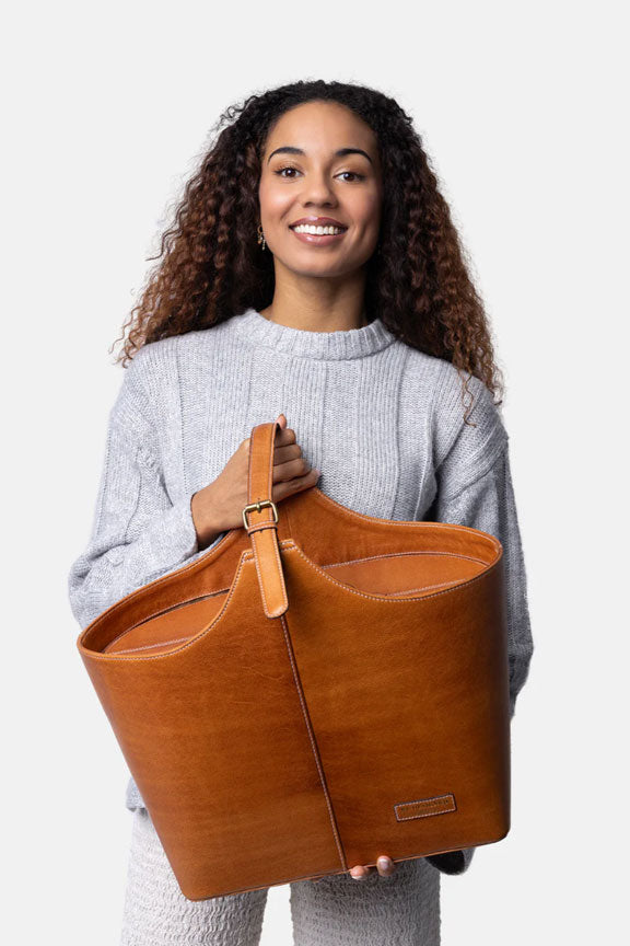 The Project 72 Bag is our spacious leather bucket—designed for both stylish and practical storage. With its sturdy structure, comfortable handle, and included leather lid + interior divider, it’s the perfect way to keep your yarn and projects safe, organized, and beautifully contained.