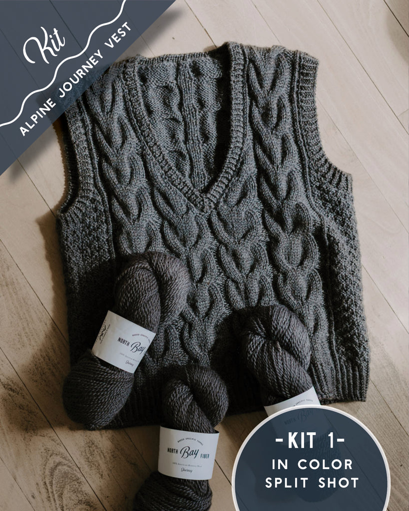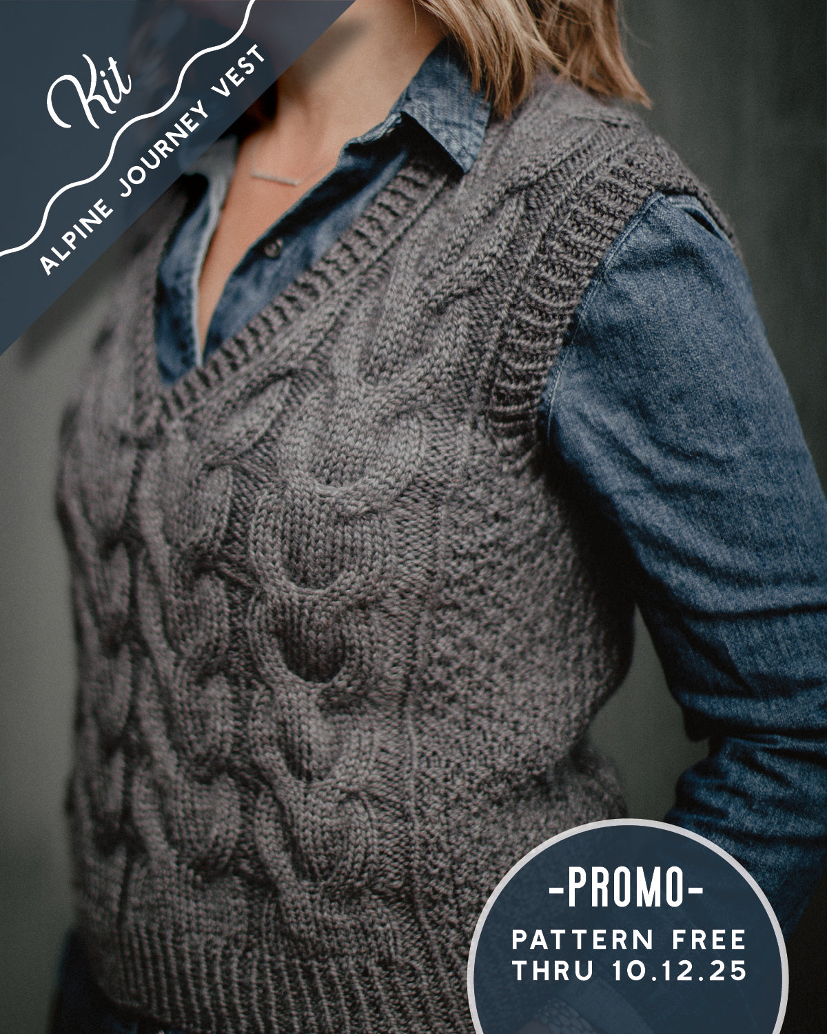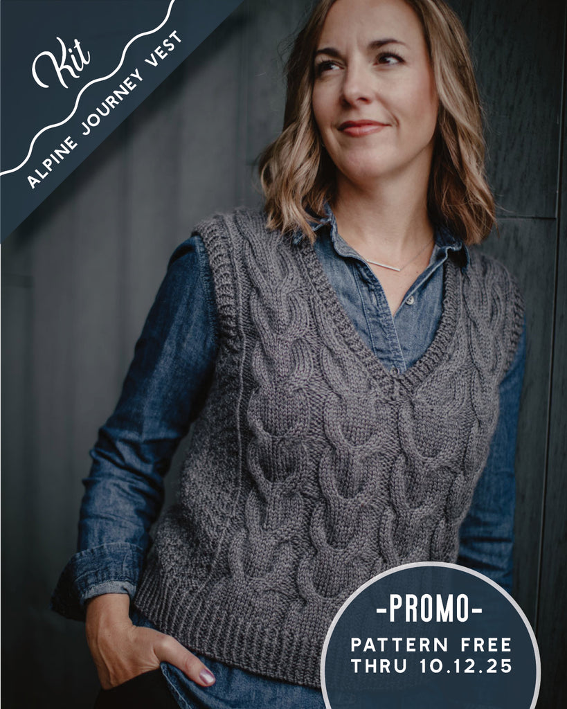 The Alpine Vest pattern is not usually included with the kit — but as a special promotion, now through Sunday, October 11th, you’ll receive the pattern FREE with your kit purchase! For more details on the pattern/spec visit the designers pattern page HERE.