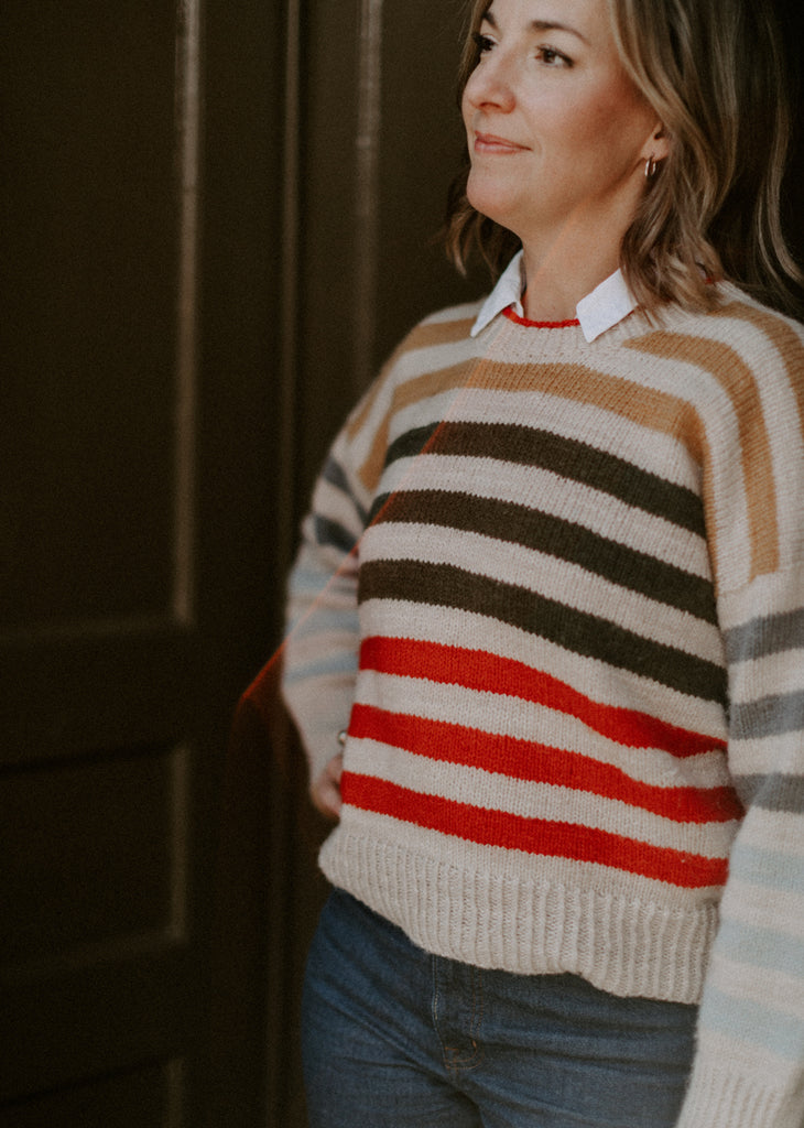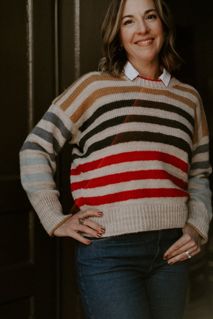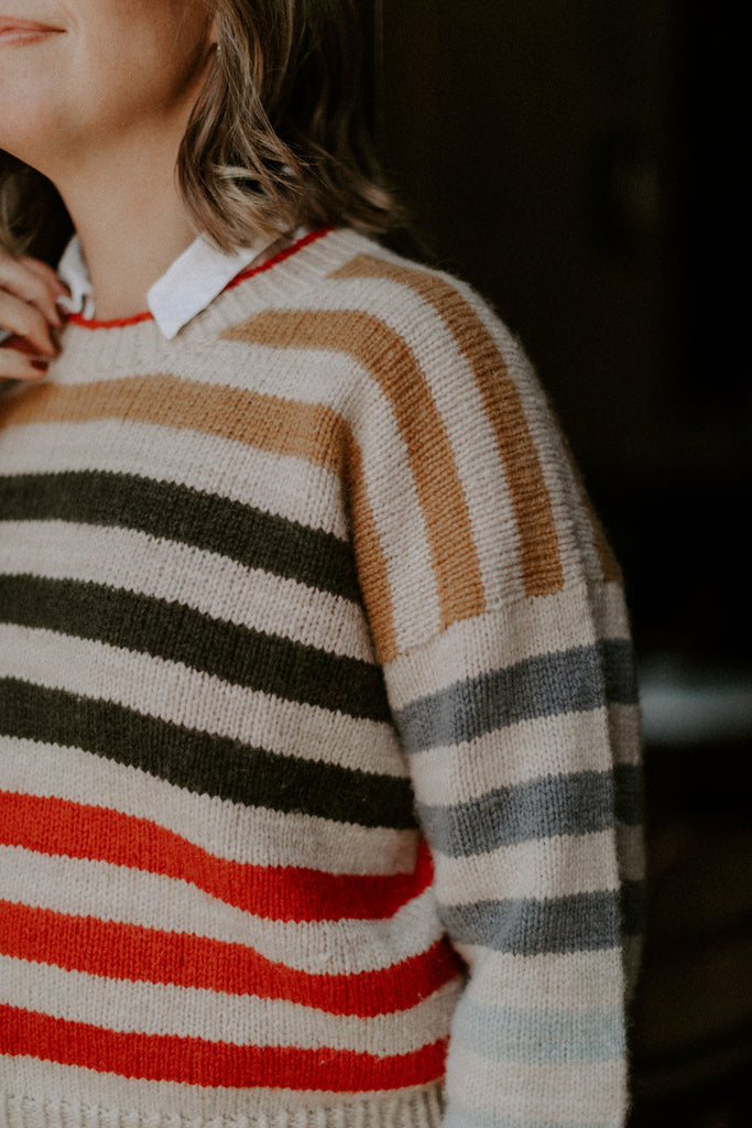 The Stripe Hype Sweater is a great stash busting project where you can use up scrap yarns or combine your favorite colors in just the way you want. Also, knitting stripes makes this one a really quick project to complete because the curiosity of seeing how every next stripe will affect the overall look is highly addictive, and a lot of fun.
