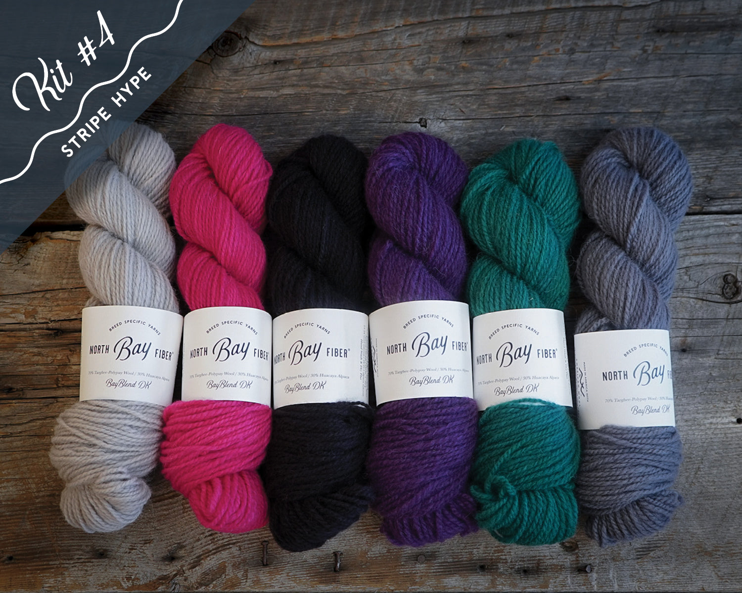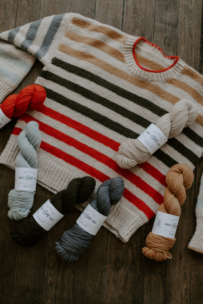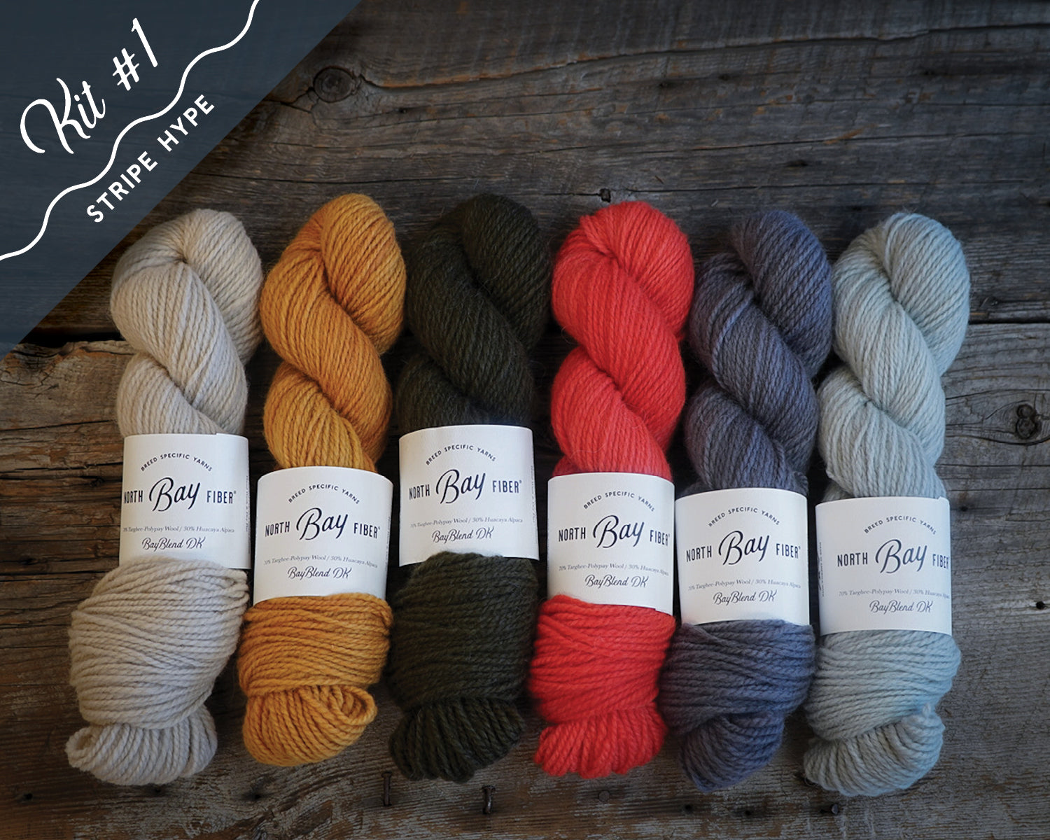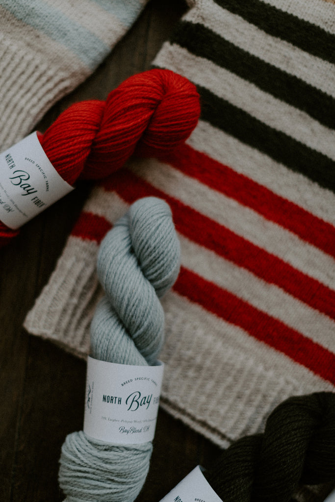 North Bay Fiber BayBlend DK (70% Targhee-Polypay Wool / 30% Huacaya Alpaca); 150 yds / 137 m per 50g, in the following skein amounts: