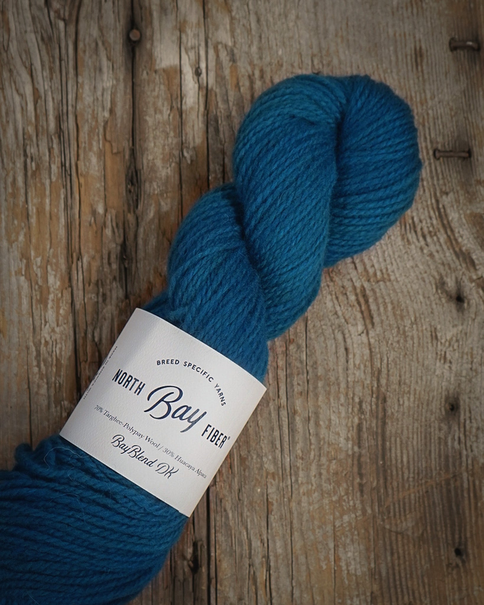 BayBlend DK brings together 70% Targhee-Polypay wool—the same source of our Heritage yarn line known for its fine, resilient fleece—and 30% Huacaya alpaca, prized for its softness and warmth. The result is a balanced yarn that’s soft yet durable, light yet full of body, making it a versatile choice for everyday knits.