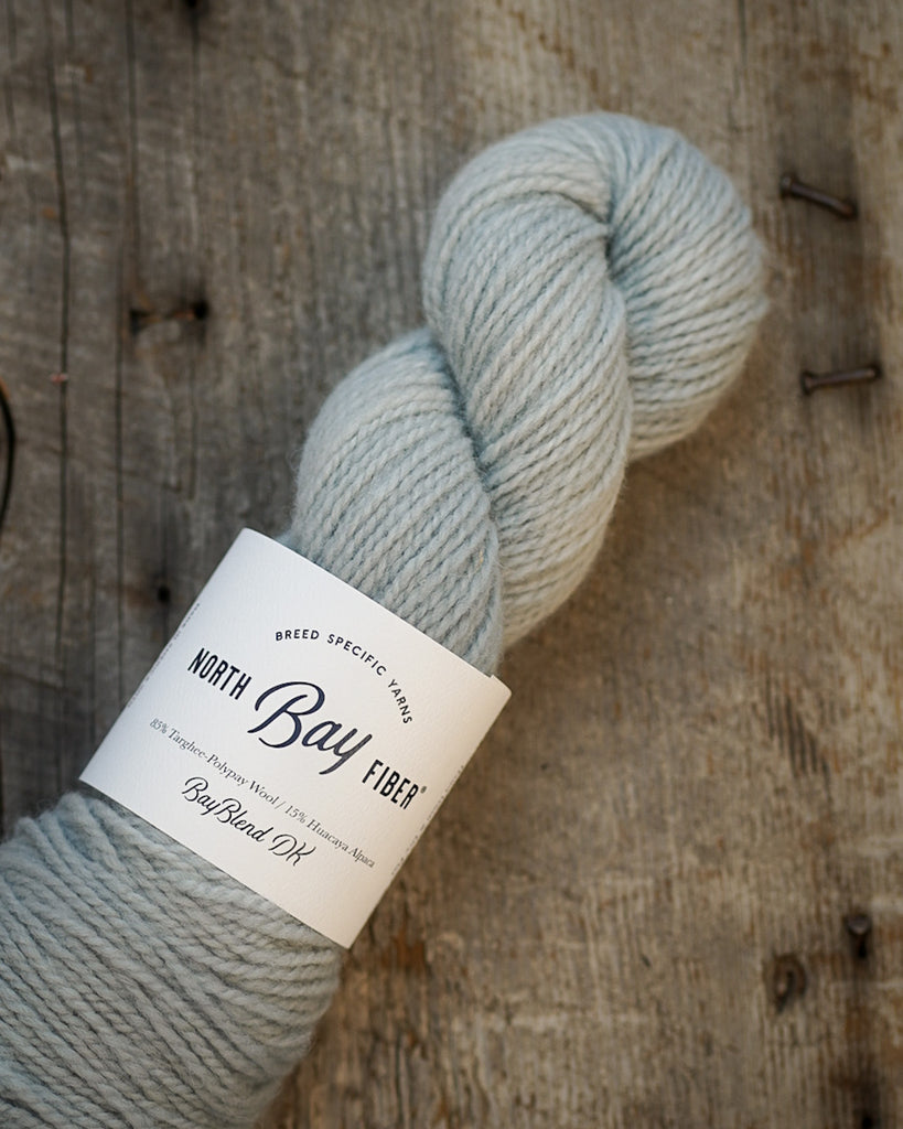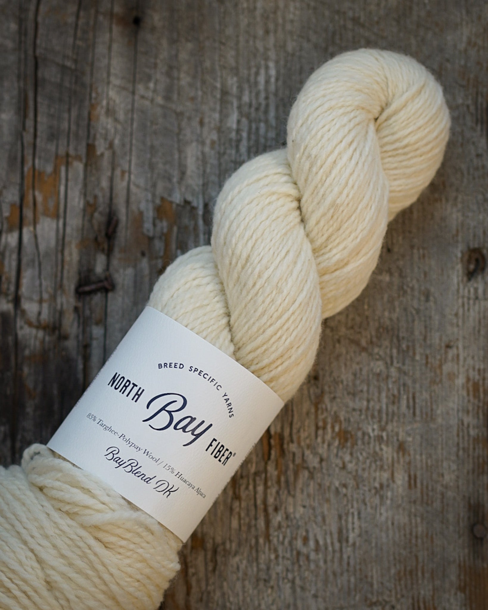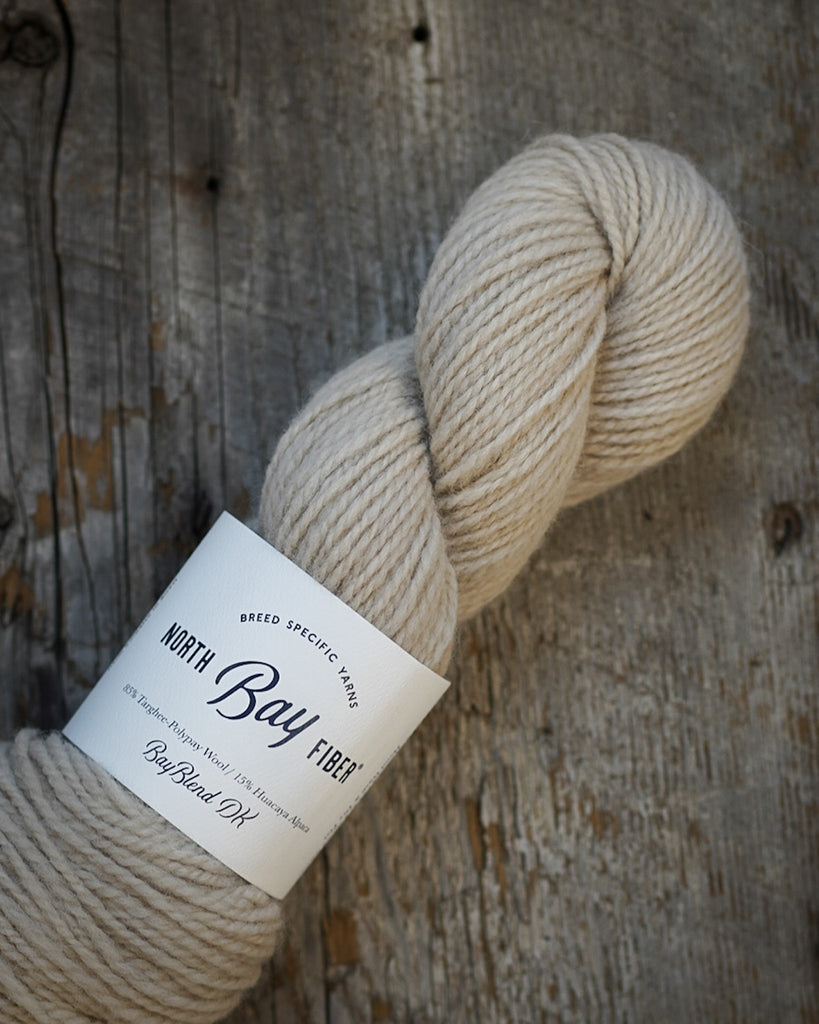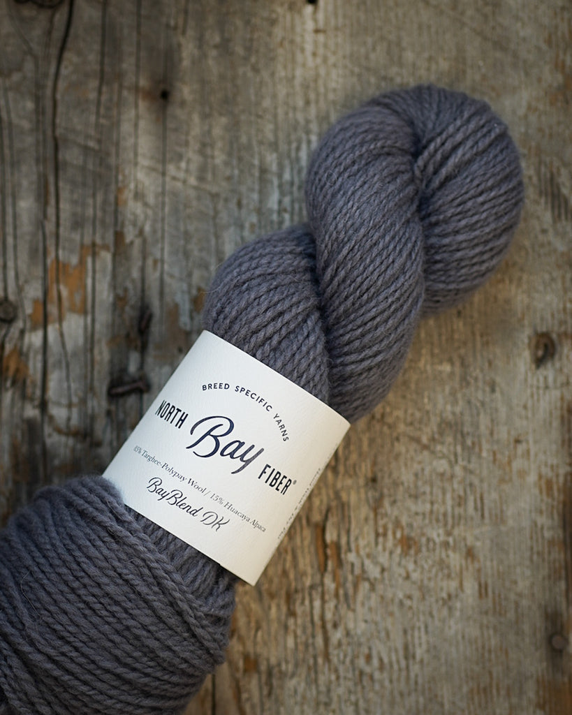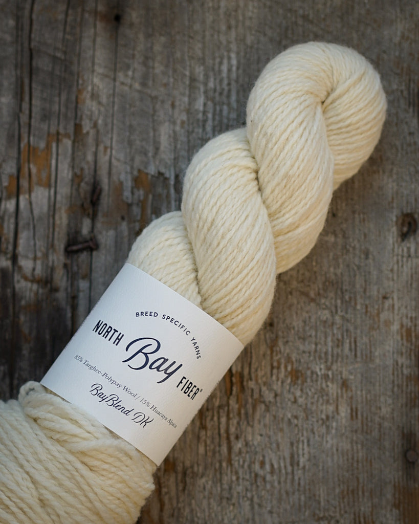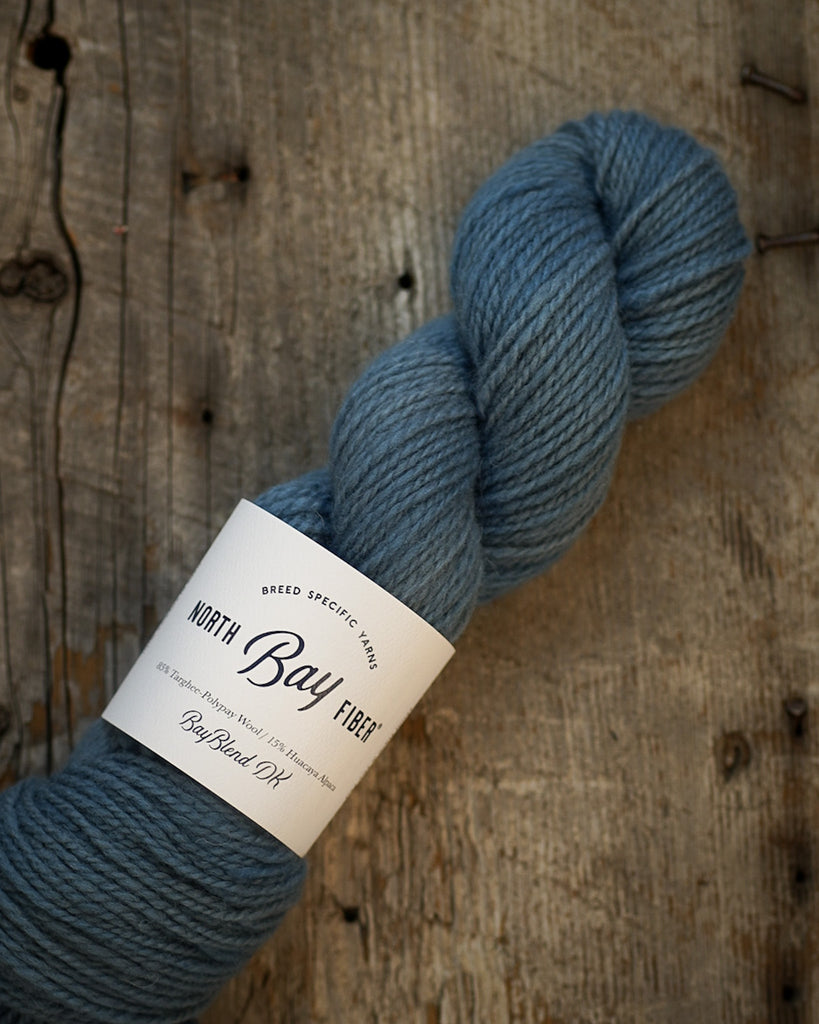 BayBlend DK brings together 85% Targhee-Polypay wool—the same source of our Heritage yarn line known for its fine, resilient fleece—and 15% Huacaya alpaca, prized for its softness and warmth. The result is a balanced yarn that’s soft yet durable, light yet full of body, making it a versatile choice for everyday knits.