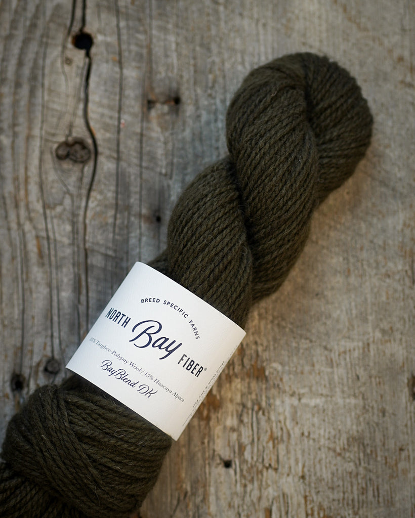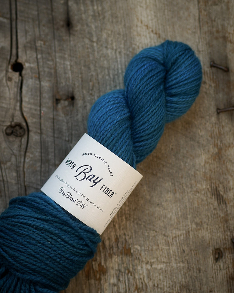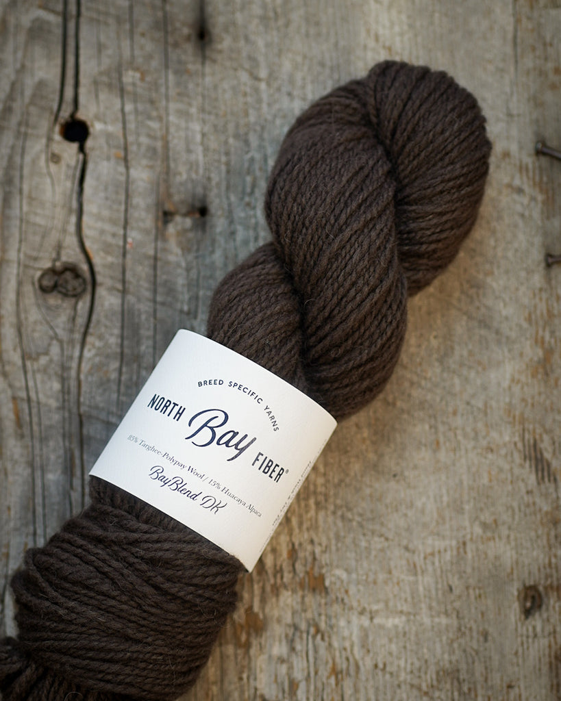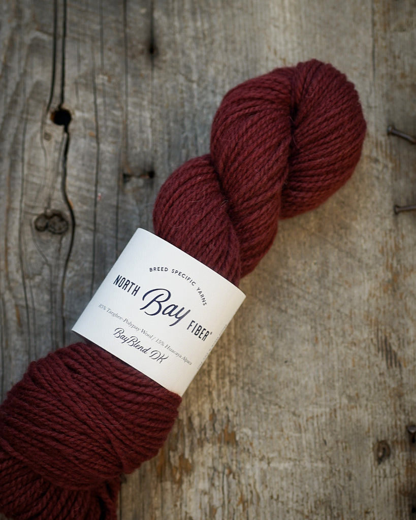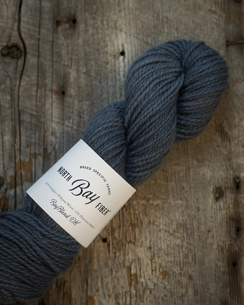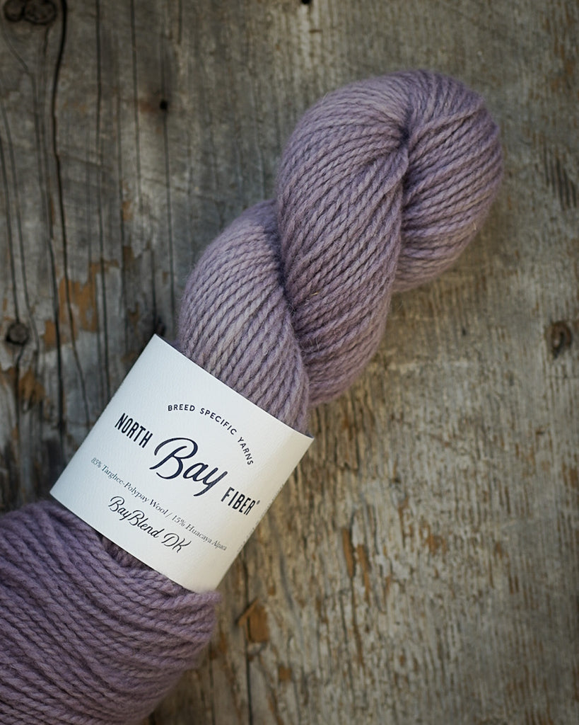 BayBlend DK brings together 85% Targhee-Polypay wool—the same source of our Heritage yarn line known for its fine, resilient fleece—and 15% Huacaya alpaca, prized for its softness and warmth. The result is a balanced yarn that’s soft yet durable, light yet full of body, making it a versatile choice for everyday knits.