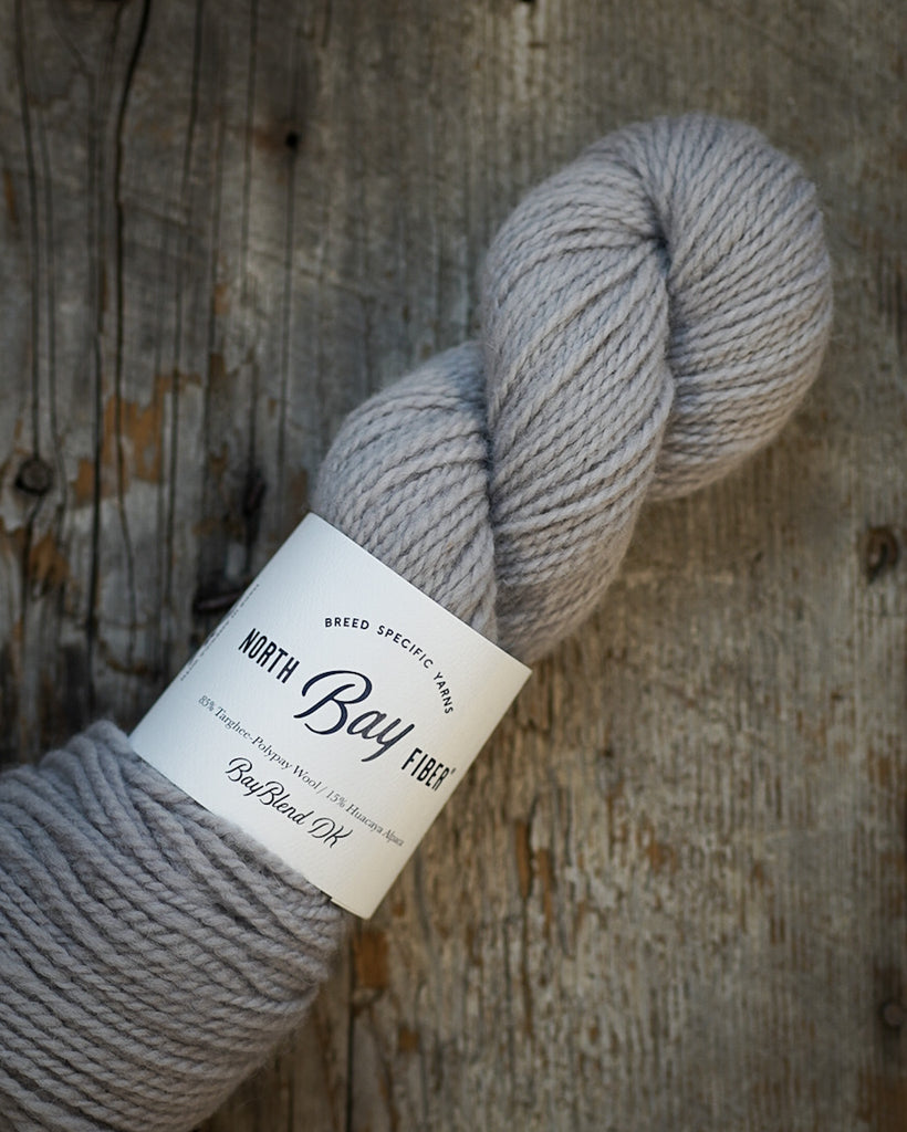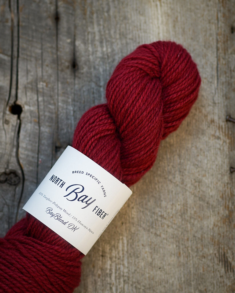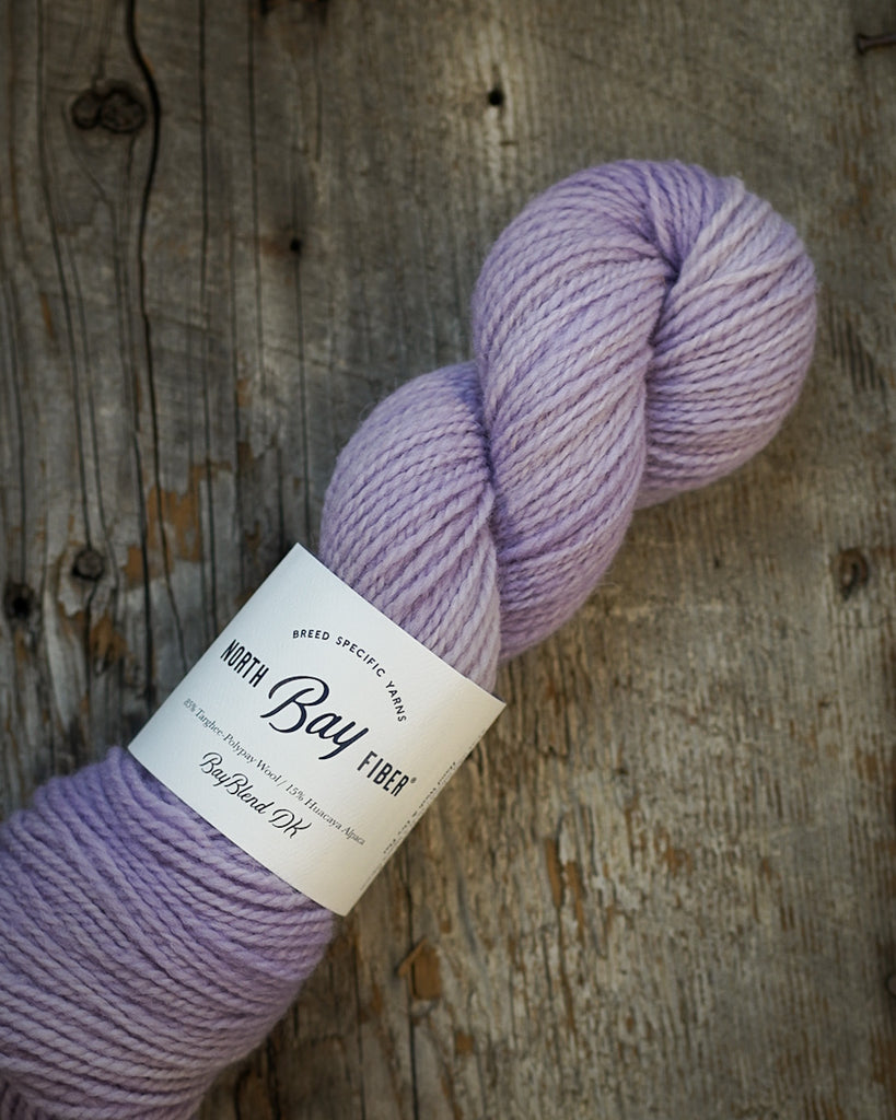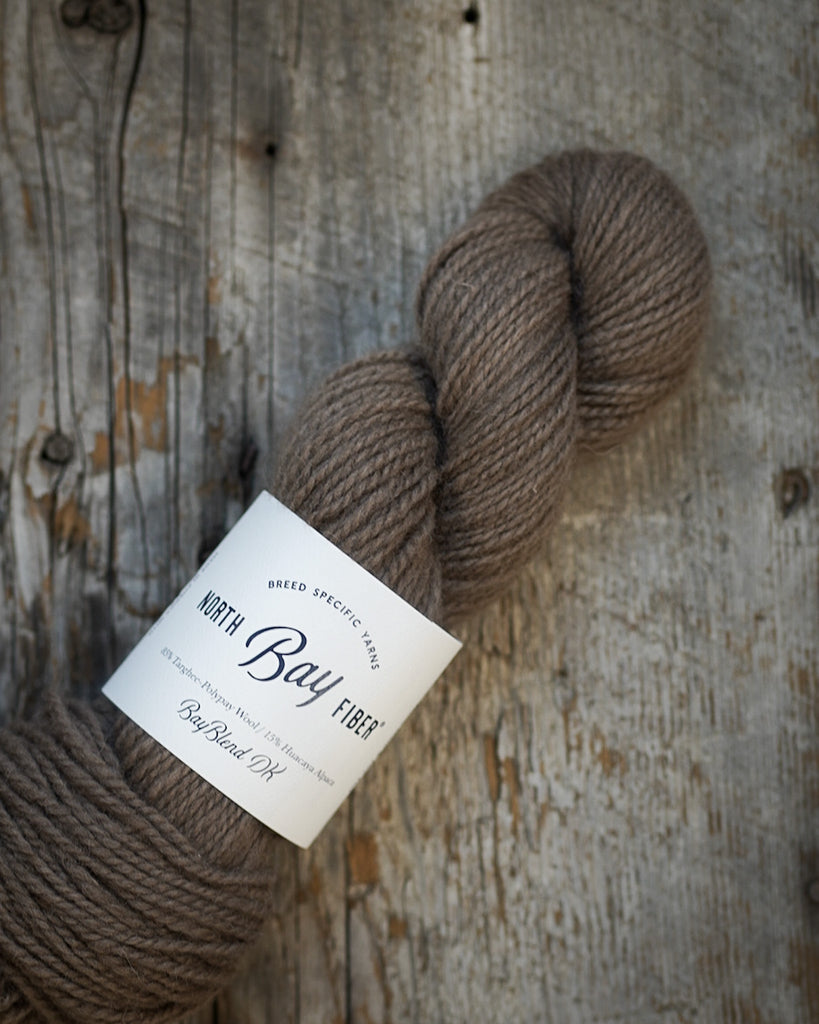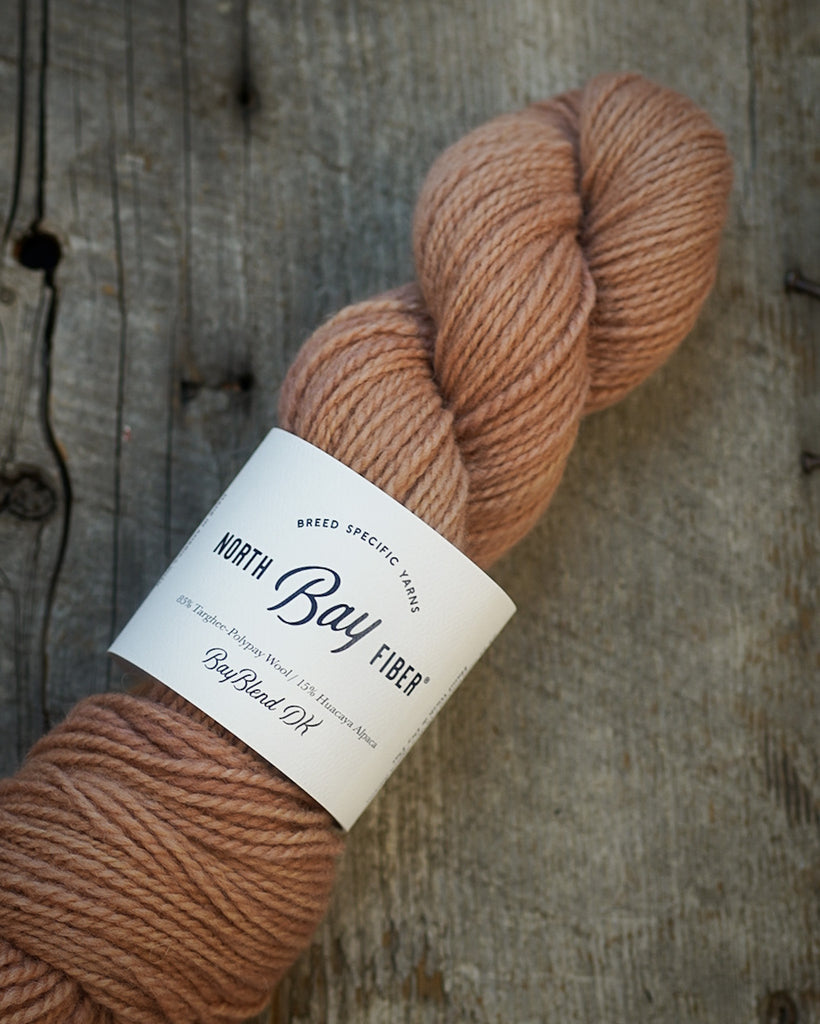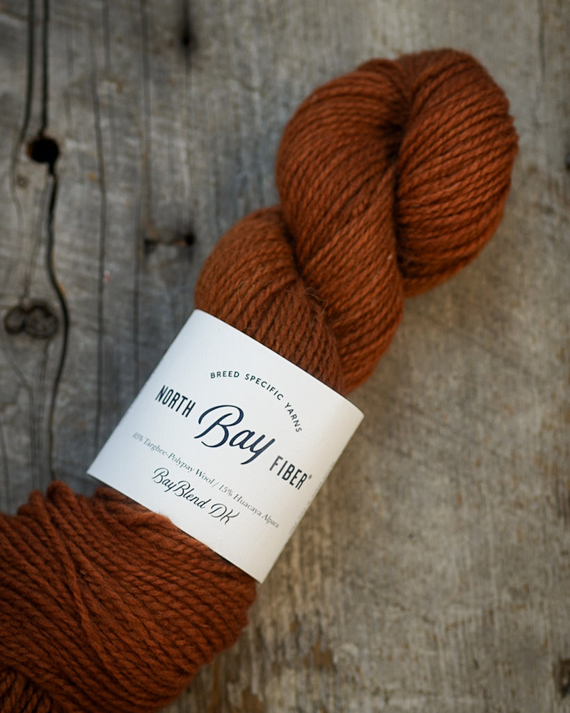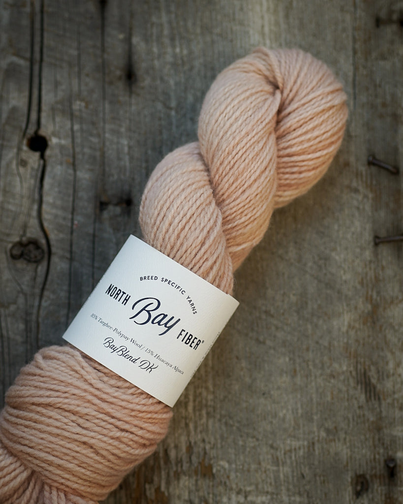 BayBlend DK brings together 85% Targhee-Polypay wool—the same source of our Heritage yarn line known for its fine, resilient fleece—and 15% Huacaya alpaca, prized for its softness and warmth. The result is a balanced yarn that’s soft yet durable, light yet full of body, making it a versatile choice for everyday knits.