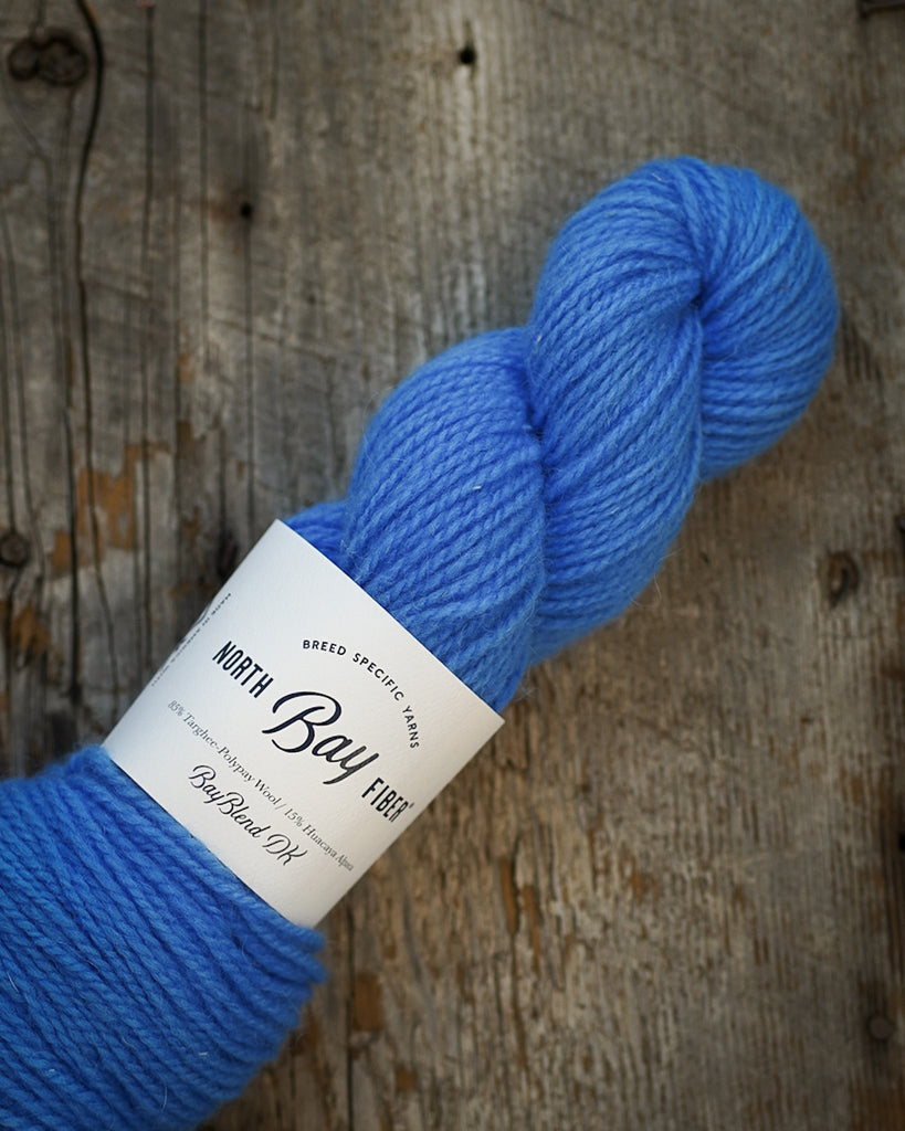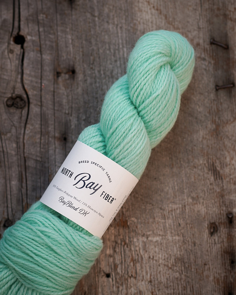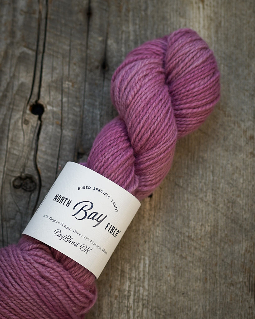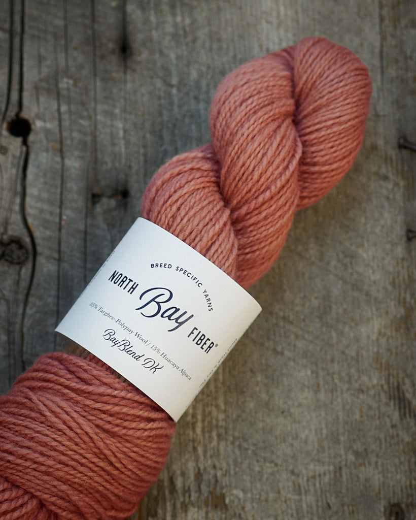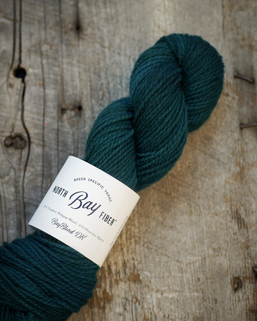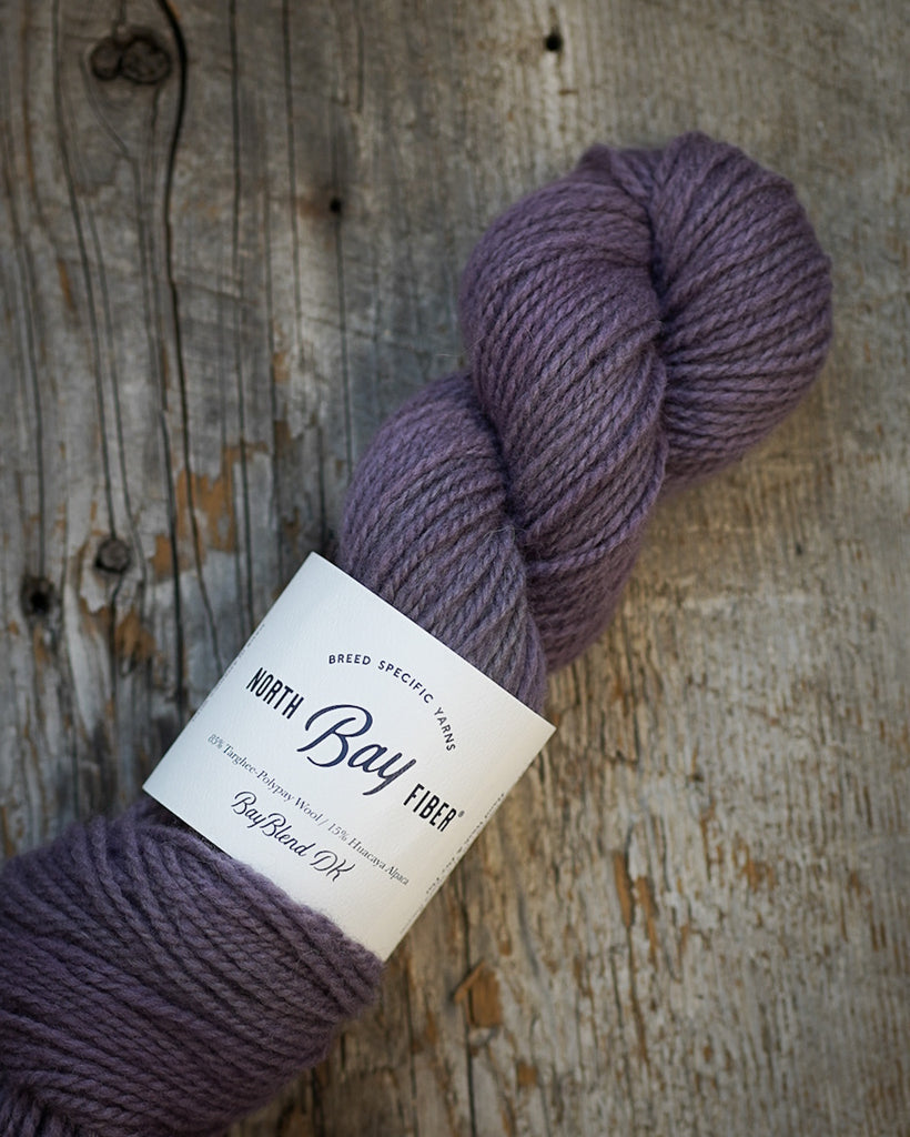 BayBlend DK brings together 85% Targhee-Polypay wool—the same source of our Heritage yarn line known for its fine, resilient fleece—and 15% Huacaya alpaca, prized for its softness and warmth. The result is a balanced yarn that’s soft yet durable, light yet full of body, making it a versatile choice for everyday knits.