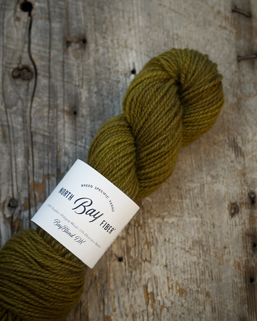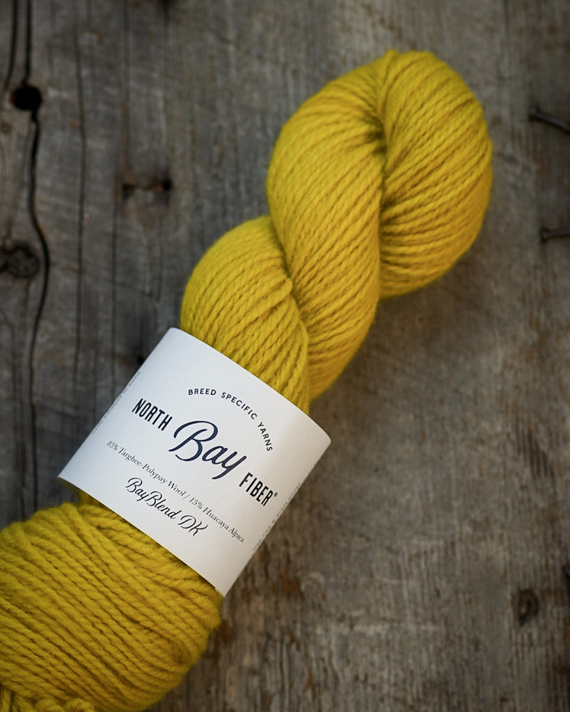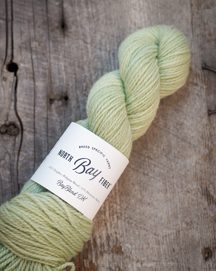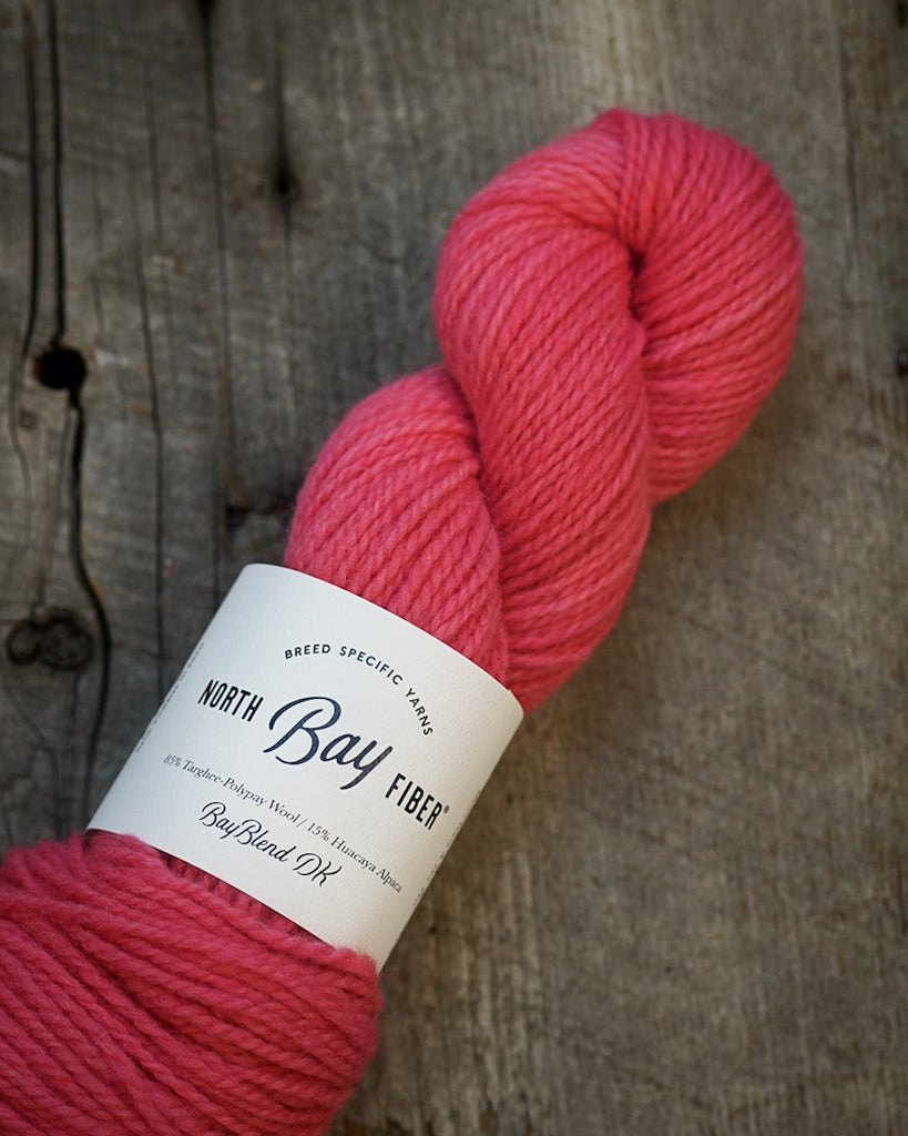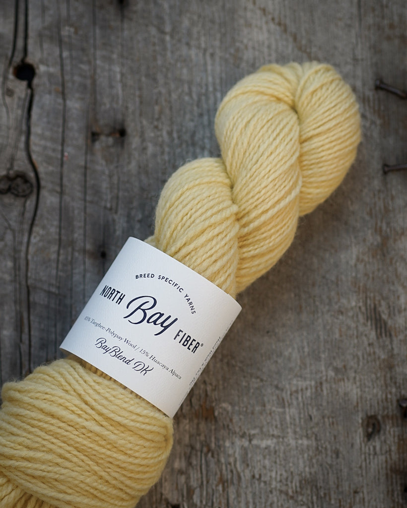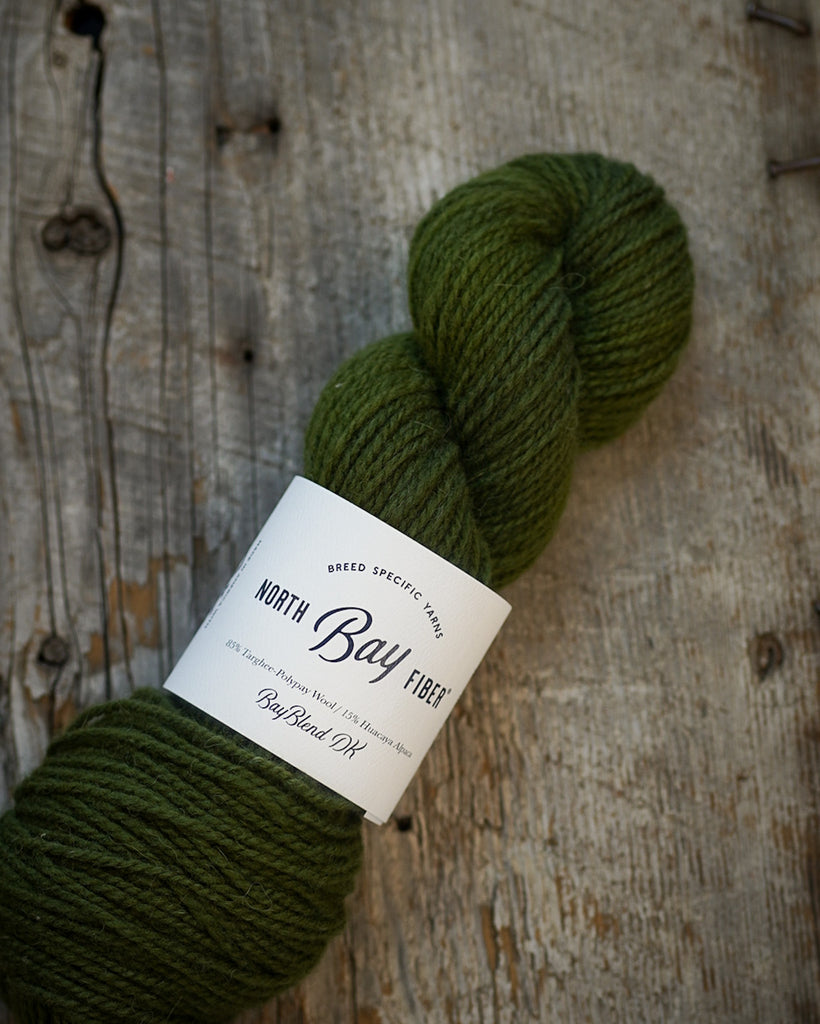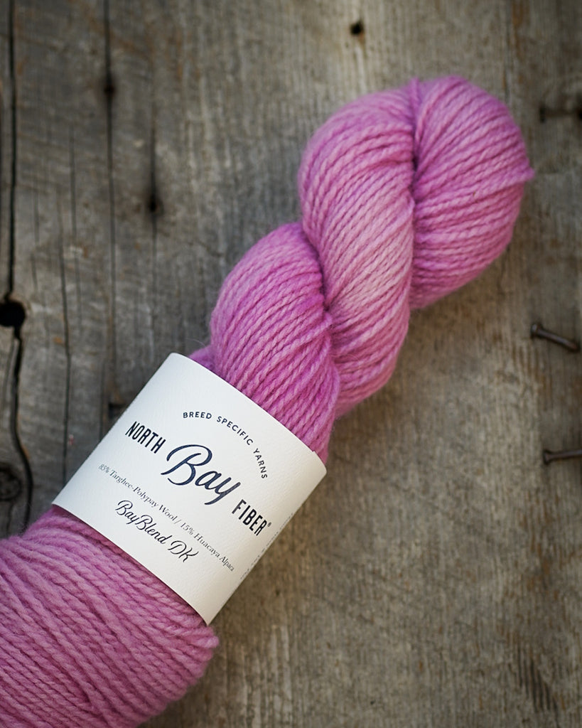 BayBlend DK brings together 85% Targhee-Polypay wool—the same source of our Heritage yarn line known for its fine, resilient fleece—and 15% Huacaya alpaca, prized for its softness and warmth. The result is a balanced yarn that’s soft yet durable, light yet full of body, making it a versatile choice for everyday knits.