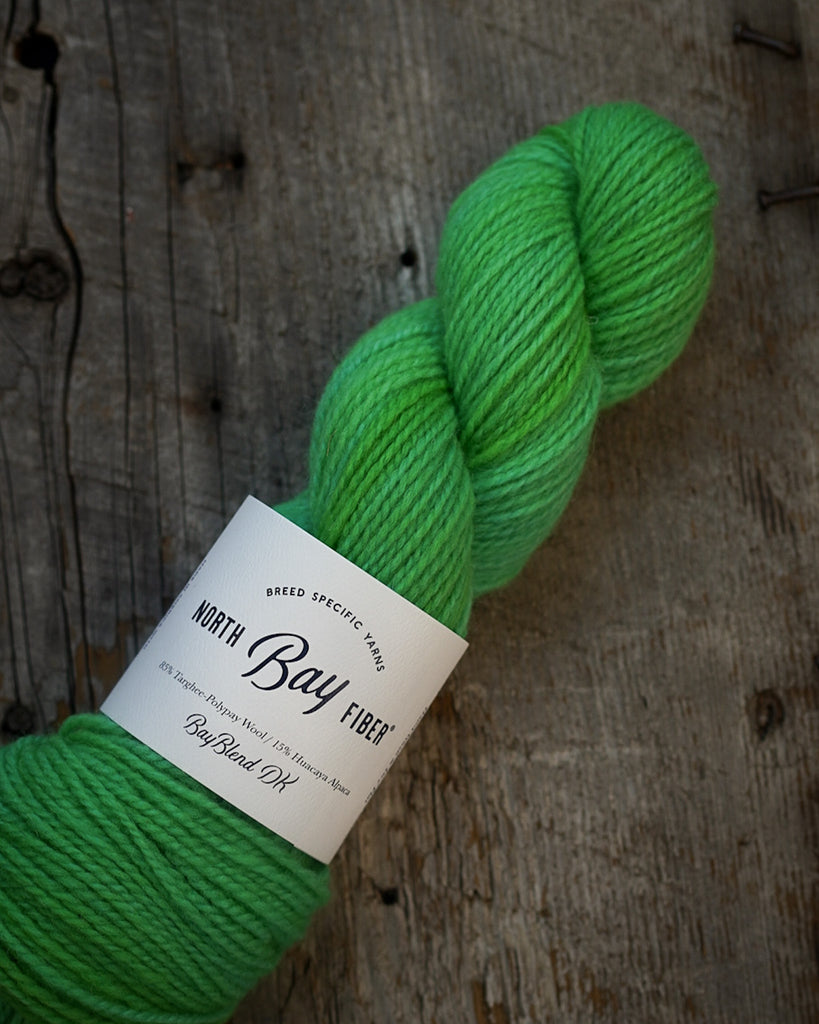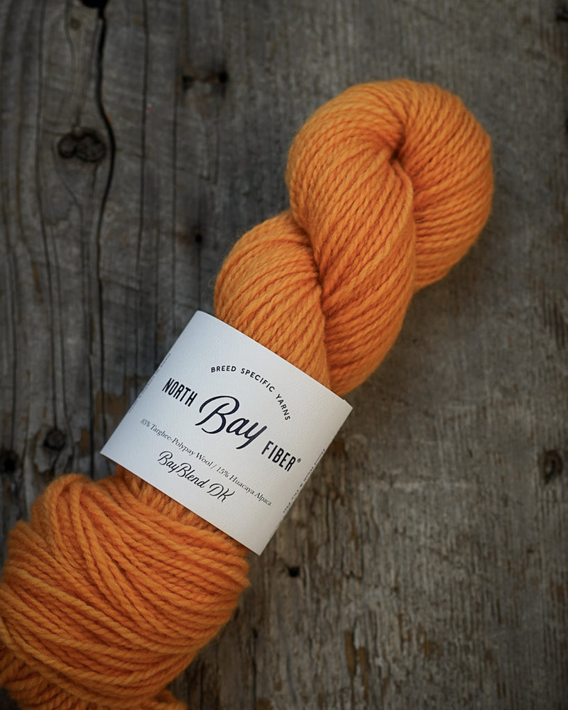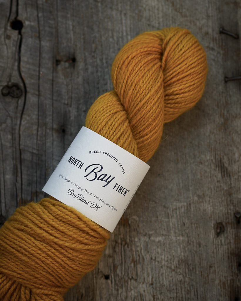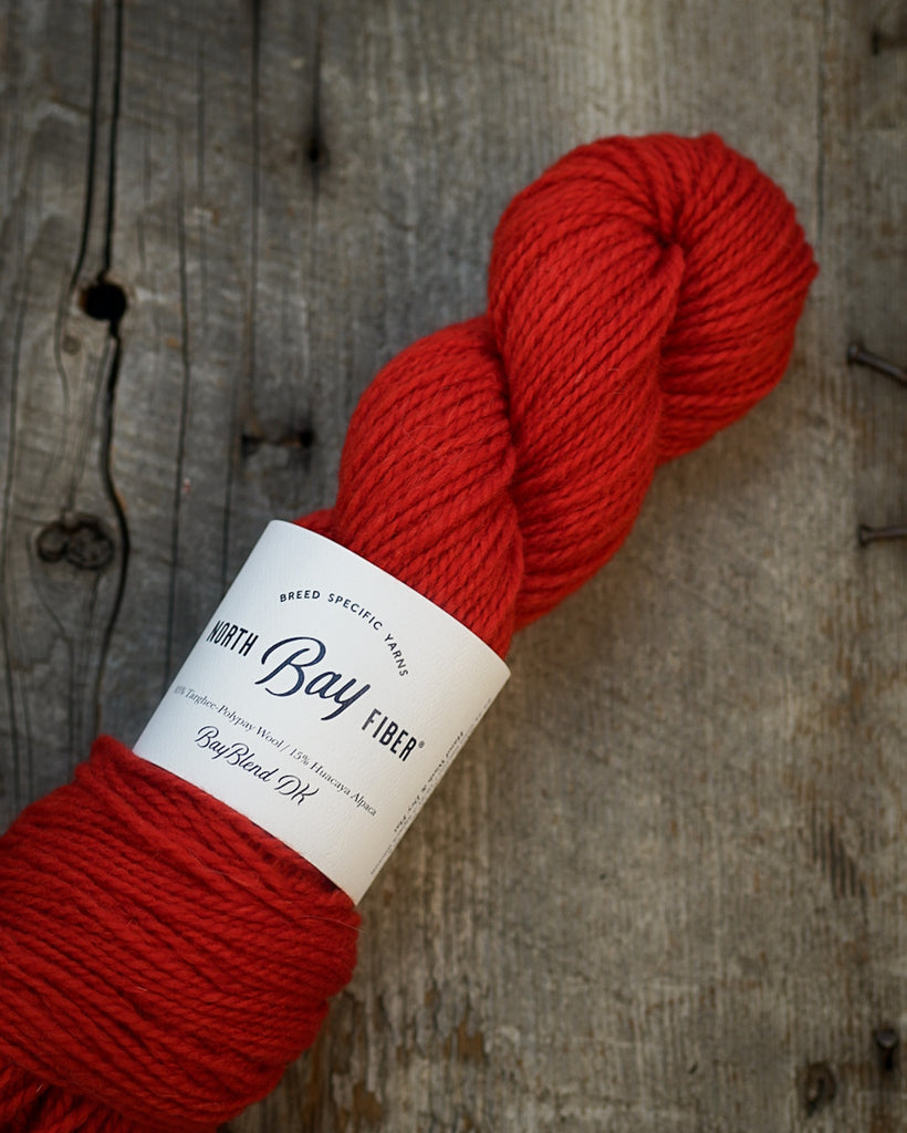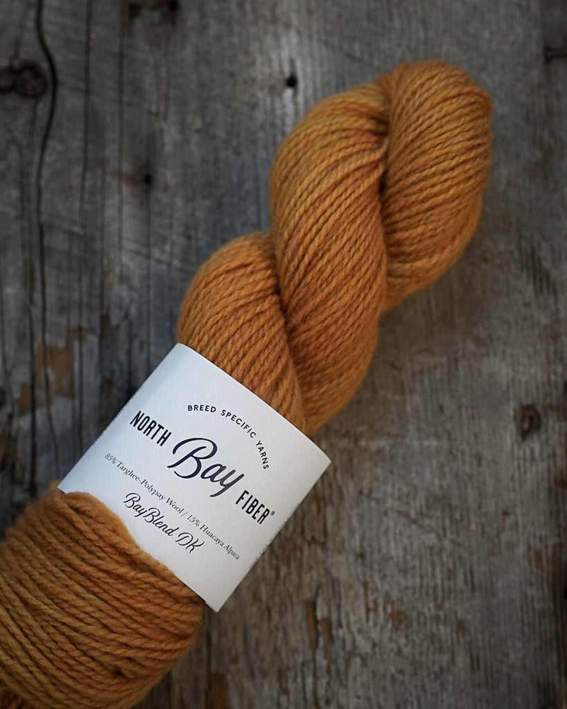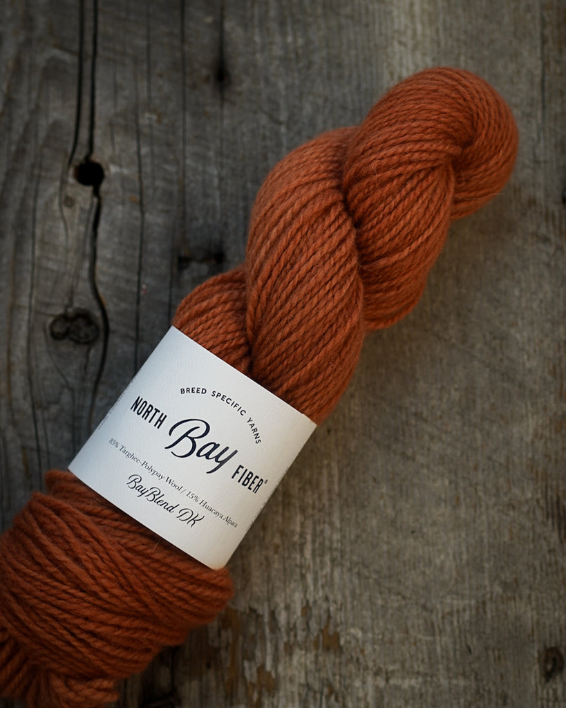 BayBlend DK brings together 85% Targhee-Polypay wool—the same source of our Heritage yarn line known for its fine, resilient fleece—and 15% Huacaya alpaca, prized for its softness and warmth. The result is a balanced yarn that’s soft yet durable, light yet full of body, making it a versatile choice for everyday knits.