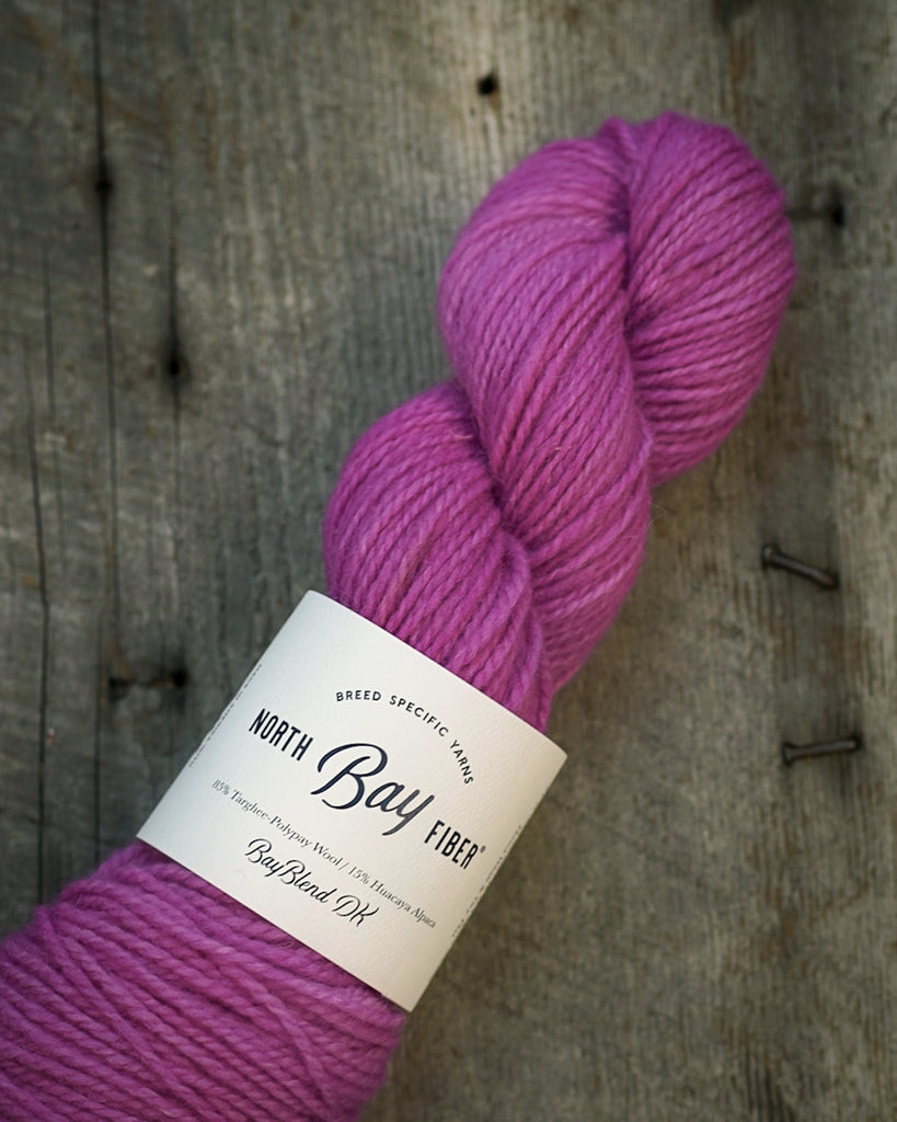 BayBlend DK is a woolen spun yarn that beautifully combines softness and structure. This lofty, two-ply blend of wool and alpaca takes the dye with rich depth and dimension. With a smooth hand and gentle halo, it’s perfect for cozy garments, colorwork, and textured stitches alike.