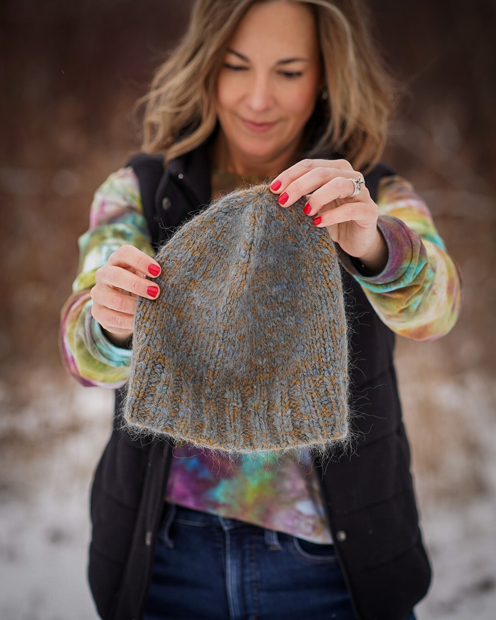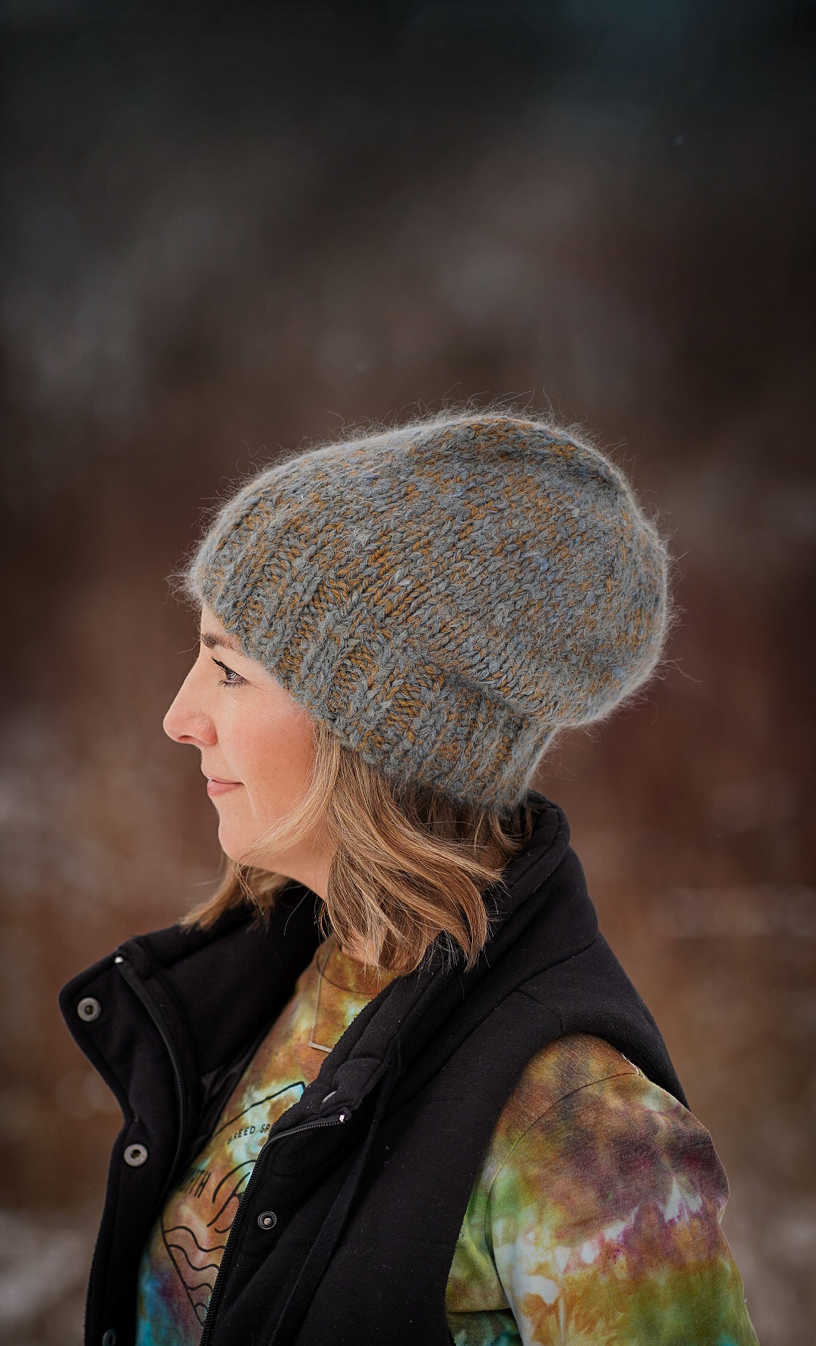 Marled Marlow is a cozy, modern hat with two pattern versions to showcases the beauty of marl. Version 1 is the original design, knit by holding North Bay Fiber BayHouse™ DK with a lace-weight yarn such as Bella Suri, creating a soft fabric with delicate halo and rich marled depth. Version 2 is knit by holding BayBlend DK with Bella Suri Feather DK for a slightly cozier feel. Featuring a generous ribbed brim, smooth stockinette body, and a neat 4-point crown decrease, Marled Marlow is simple, customizable, and fun to knit.